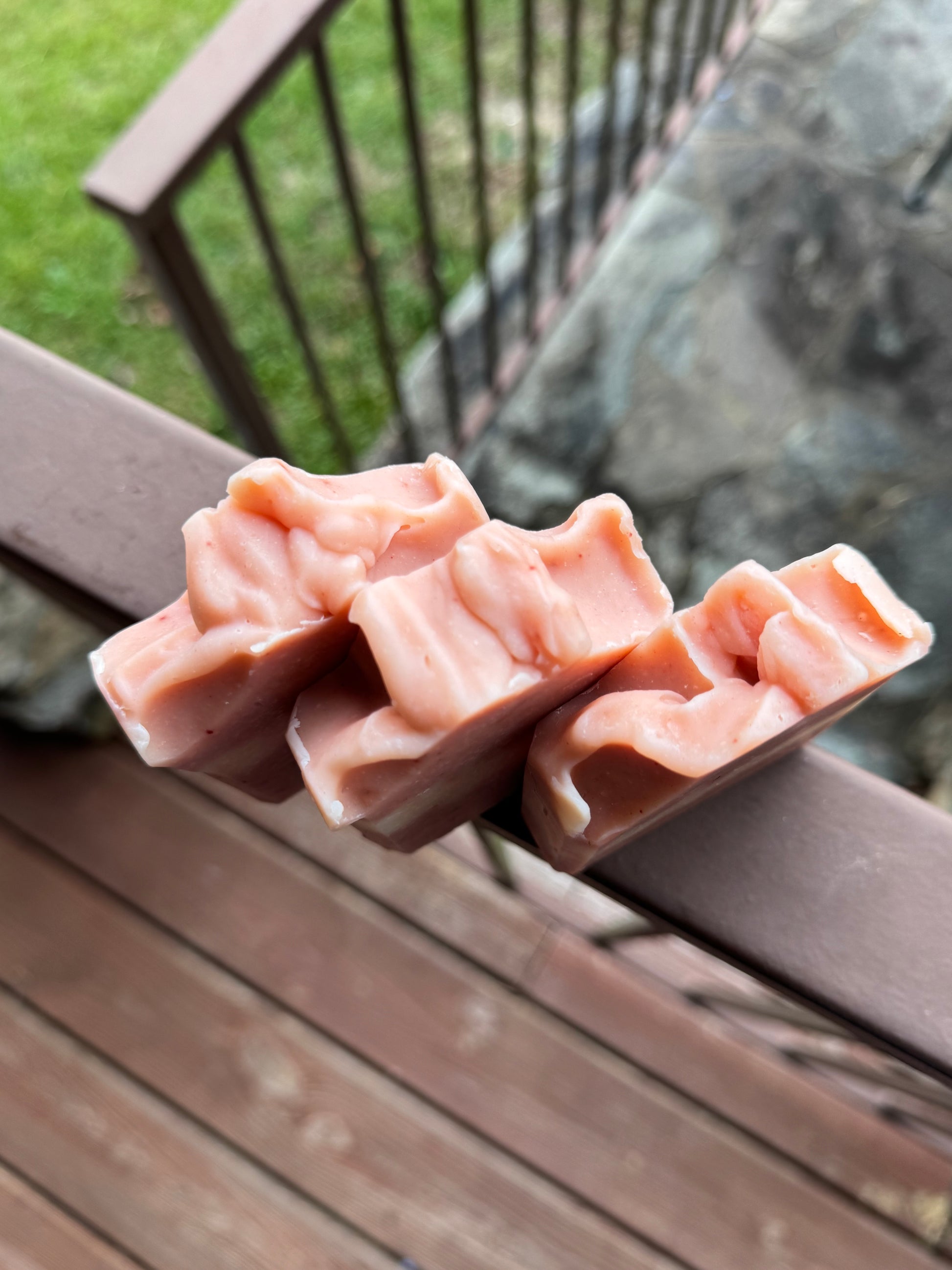 Ingredients: Olive Oil, Coconut Oil, Shea Butter, Coconut Milk, Distilled Water, Sodium Hydroxide, Cocoa Butter, Avocado Oil, Castor Oil, Jojoba Oil, Fragrance Oils, Essential Oils, madder root